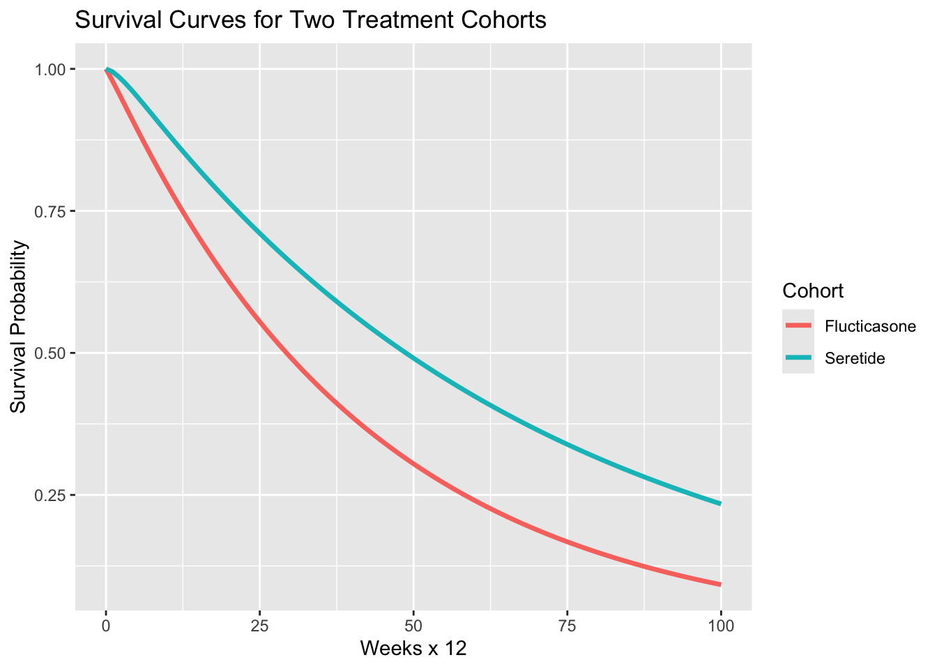 cohort = rep(c("Seretide", "Flucticasone"), each = length(time_points))