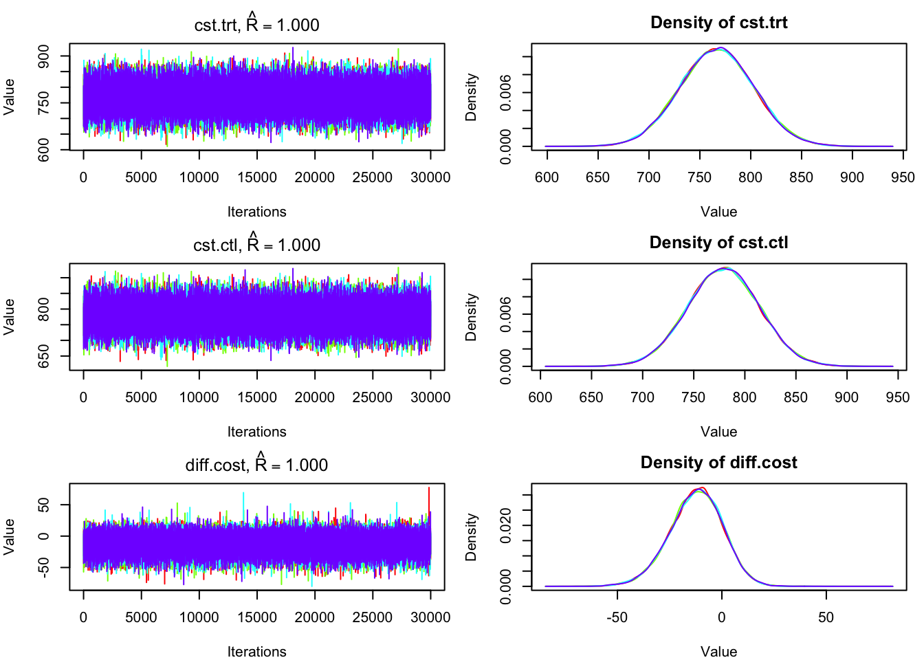 Plot the posterior densities for the cost of treatment