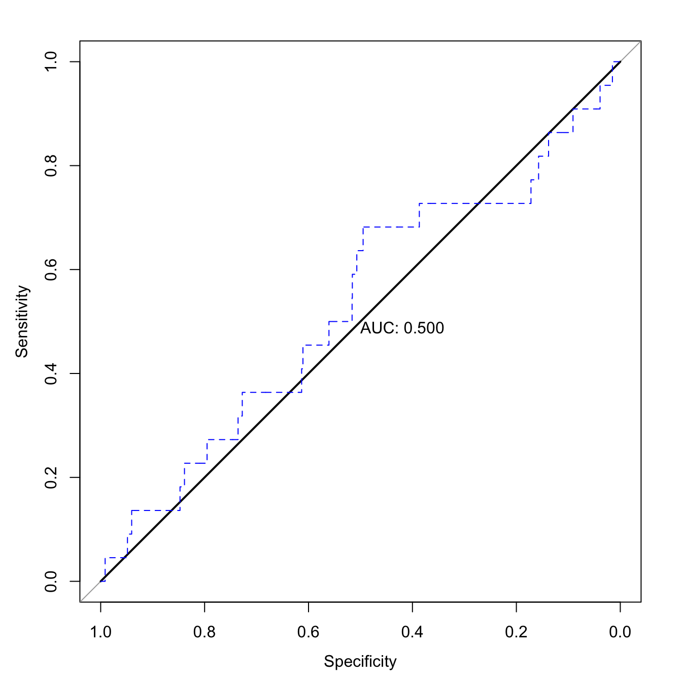 with(simp_roc, lines(1 - FPR, TPR, col="blue", lty=2))Code