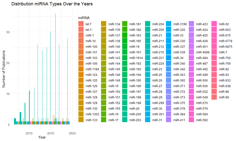 Distripution of miRNA types over the years