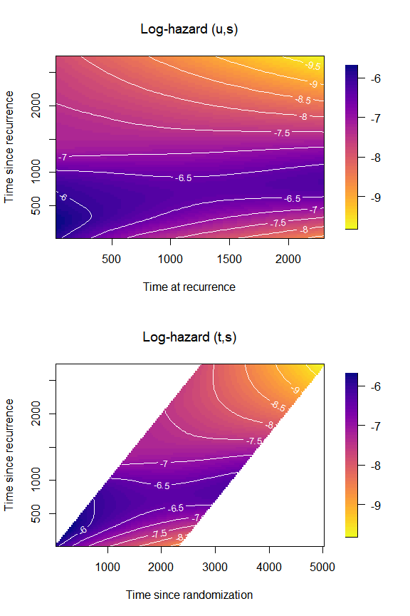TwoTimeScales v1.0.0: Provides functions to analyze time-to-event data with two time scales by estimating a smooth hazard that varies over two time scales and also including functions to prepare the raw data, estimate and plot the two-dimensional smooth hazard. See Carollo et al. (2024) for the theory. There are four vignettes, including Introduction and Visualize hazards.
