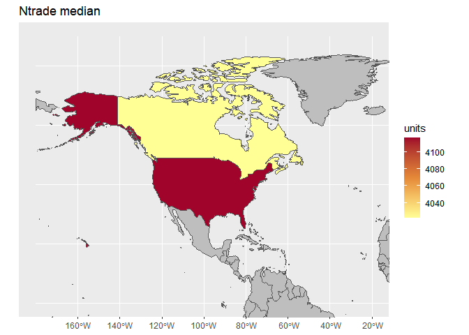 Map of North America showing median N trade by country