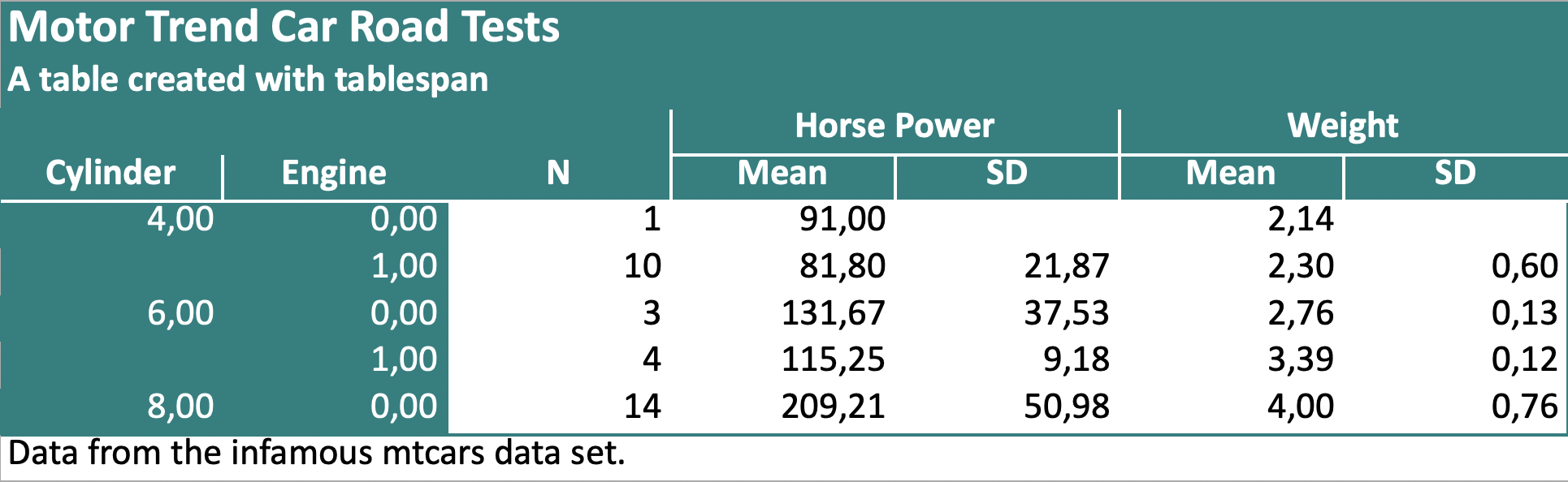 tablespan v0.1.7 Provides functions to create “good enough” tables that can be exported to Excel, HTML, LaTeX, and RTF. Look here for an introduction.