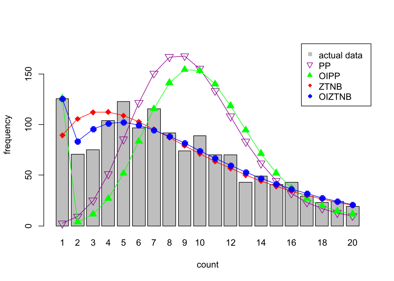 oneinfl v1.0.1: Provides functions to estimate Estimates one-inflated positive Poisson, one-inflated zero-truncated negative binomial regression models, positive Poisson models, and zero-truncated negative binomial models along with marginal effects and their standard errors. The models and applications are described in Godwin (2024). See README for and example.