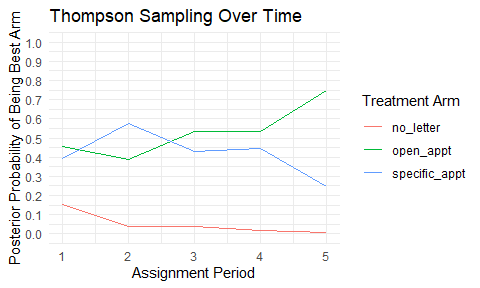 whatifbandit v0.3.0: Provides functions to simulate the results of completed randomized controlled trials, as if they had been conducted as adaptive Multi-Arm Bandit trials instead. Uses augmented inverse probability weighted estimation, outlined by Hadad et al. (2021), to estimate the probability of success for each treatment arm under the adaptive design. See Offer-Westort et al. (2021) for background and the vignette for examples.