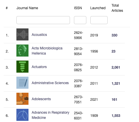 MDPIexploreR v0.2.0: Provides tools to scrape and analyze data from the MDPI journals, including functions to extract metrics such as submission-to-acceptance times, article types, and plot data, and explore patterns of self-citations. See the vignette.