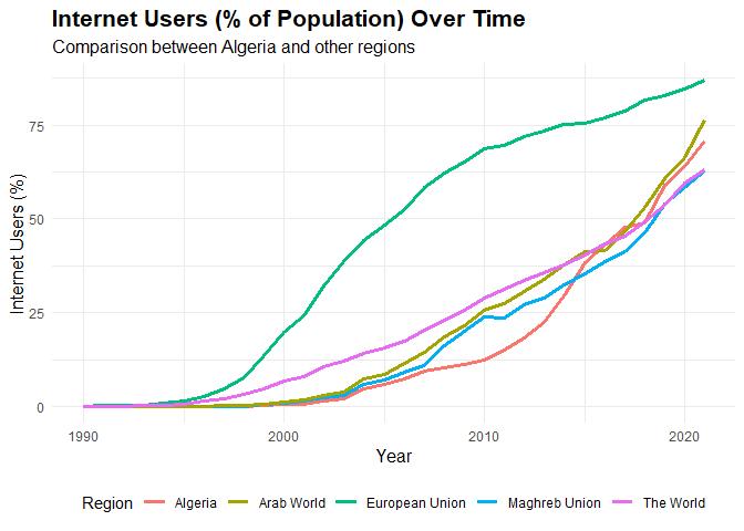 % of Algerian population using internet compared to other regions