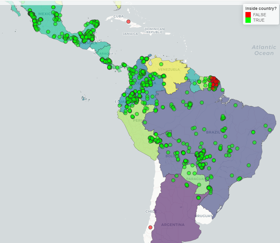 Map showing true and false records.