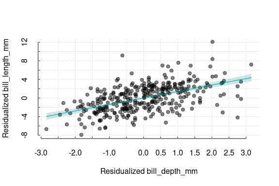 partialling.out v0.2.0: Creates a data frame with the residuals of partial regressions of the main explanatory variable and other variables of interest. This method follows the Frisch-Waugh-Lovell theorem, as explained in Lovell (2008). See the vignette.